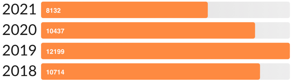 O wiele gorzej statystyki wypadły w przypadku przeczytanych stron. Rok 2020, to przeczytanie niecałe 10 500, za to w kolejnym jedynie 8132 strony.
