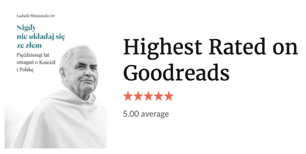 Ciekawostką jest fakt, że najwyżej ocenianą pozycją przez społeczność Goodreads przeczytaną przeze mnie, jest zbiór tekstów o. Leona Wiśniewskiego OP „Nigdy nie układaj się ze złem. Pięćdziesiąt lat zmagań o Kościół i Polskę”. Nie dziwi mnie najwyższa ocena. Wszak, to jest pozycja, w której zdiagnozowane i szczegółowo opisane są wszystkie problemy z jakimi boryka się Kościół Katolicki w Polsce.